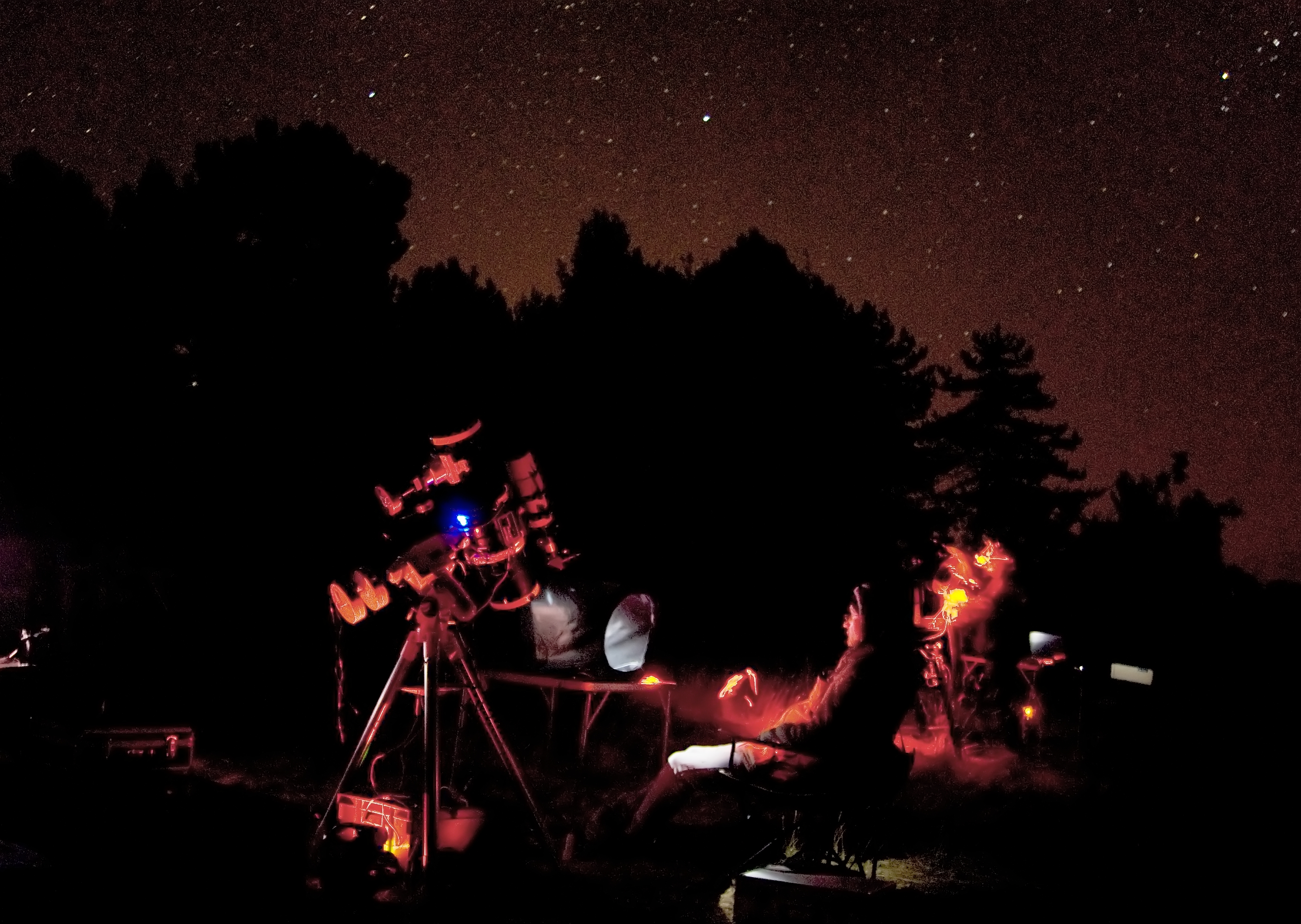 On august 9th, the sky was cloudy so we anticipated Steve's talks. Then, around 10pm the sky cleared up with a very dark night but windy. Several observation have started ok last night....