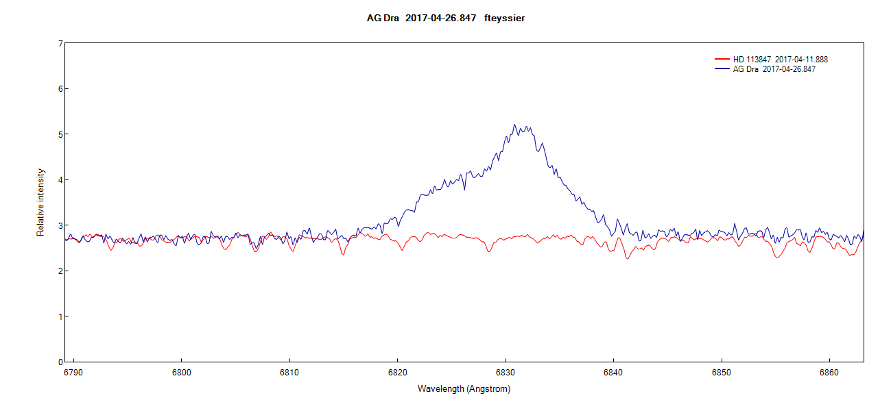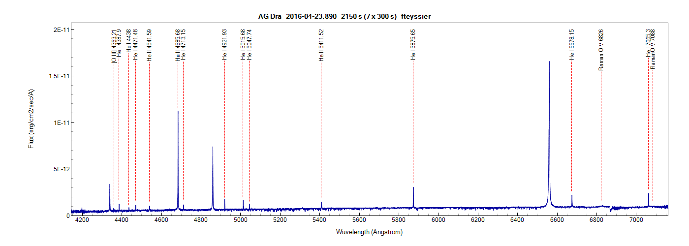 Here is my low resolution spectra of AG Dra, taken last night on 26Apr17:
