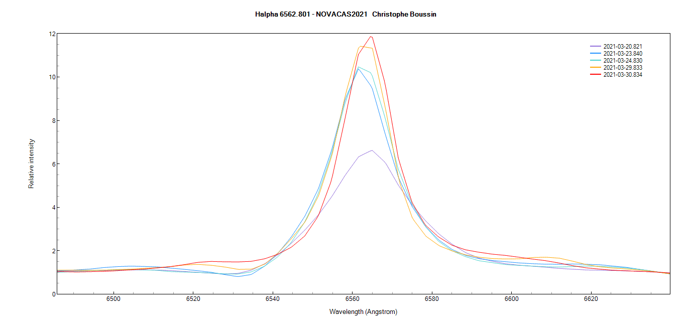 That is Nova Cas 2021 two nights comparison, it seems there are a recurrent tendency to come back to a Halpha "P Cyg" situation.