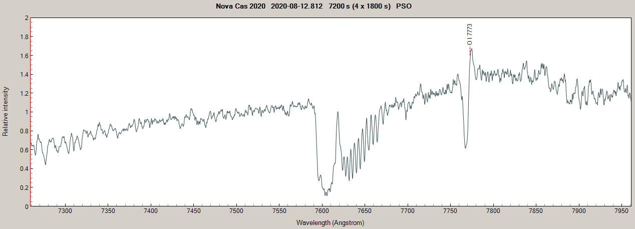 - Nova Cas 2020 on August 5th, 6th, 7th, 15th and 17th, 2020 (identification of lines from PlotSpectra)