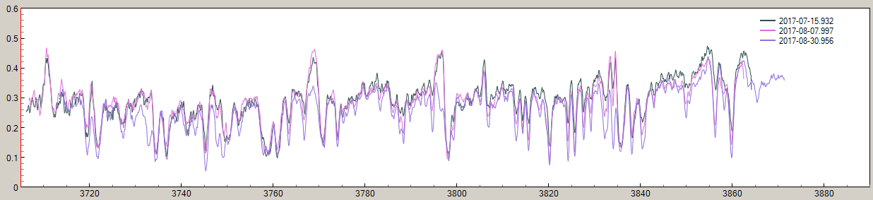 So here we caught the TiII 3900, 3913A lines in emission (JFO confirming it), and I've also had such a state on 2458025 (2017.09.28), that was the minimum state right after eclipse start (the 2nd spectrum).