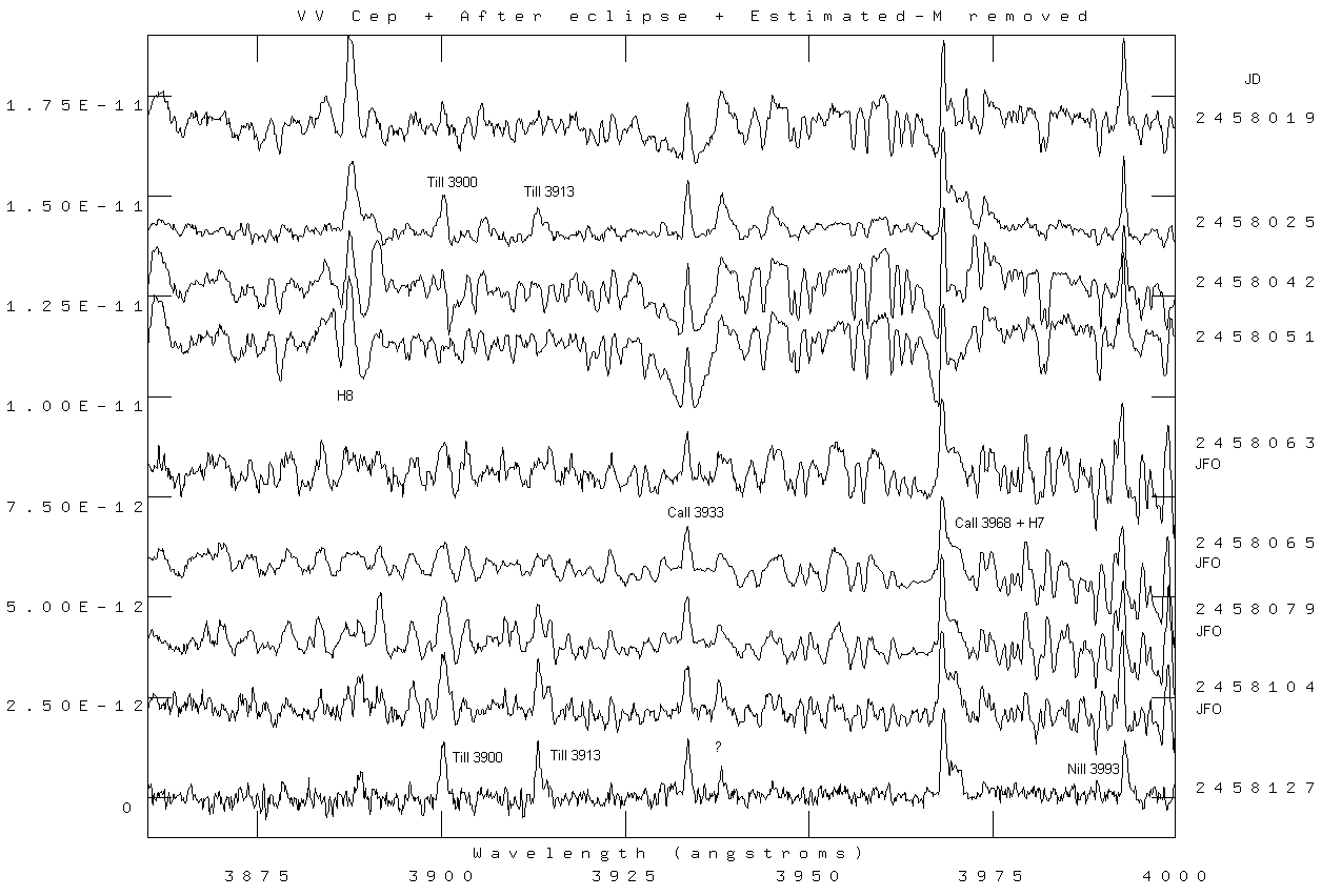 Here is a CaK spectrum of VV Cep I took on 22Nov17 with the principal balmer lines shown as well as an He line near 4025A: