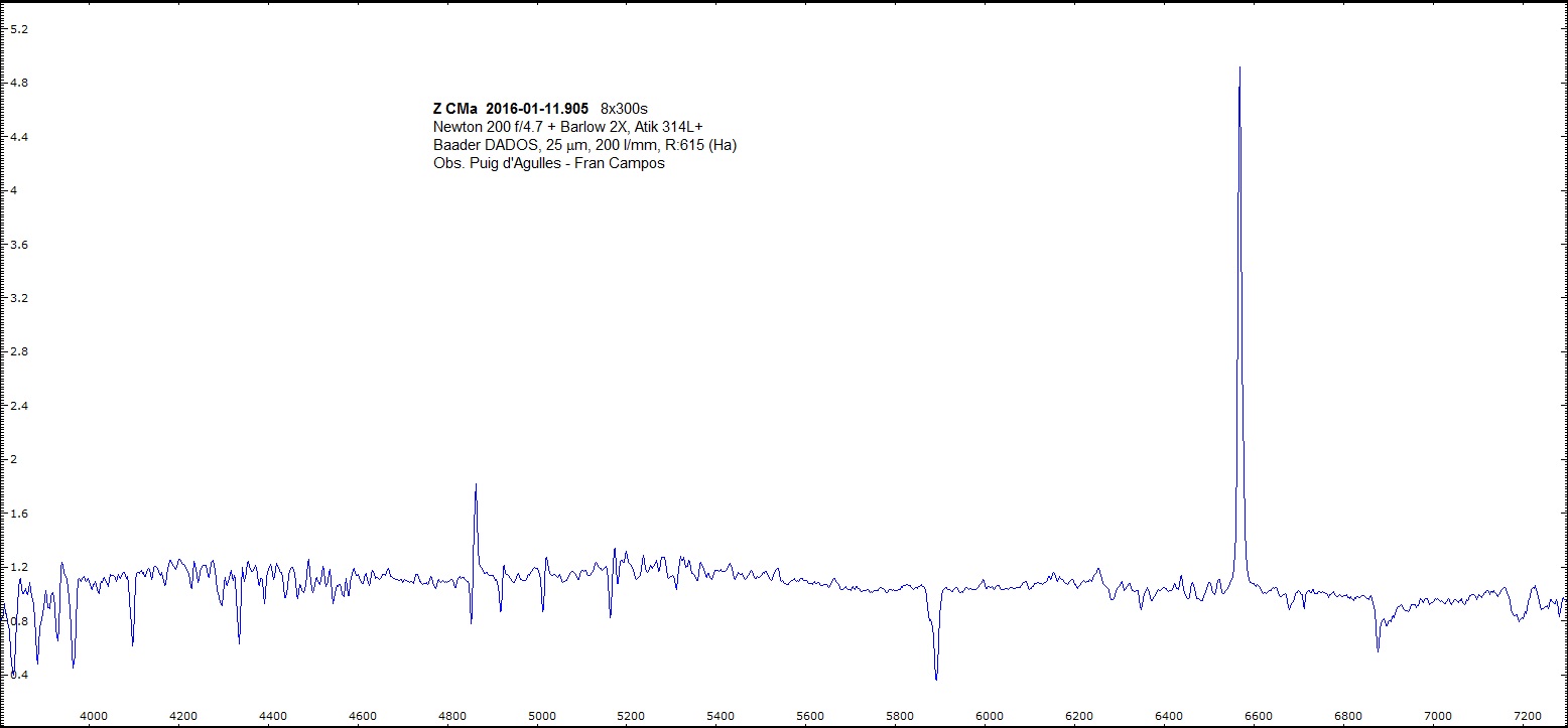 Here is Z CMa for Jan 23rd (R=9000 centered on Ha) V Mag from AAVSO was ~ 8.3.