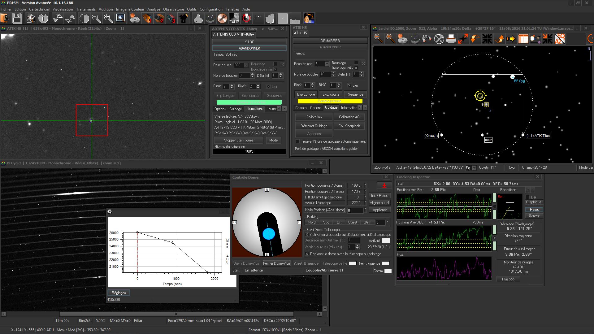 Observatoire de la Belle Etoile is observing tonight. After Arcturus and beta Lyrae mainly to document my observing procedure, I am now on BF Cygni which shows very nice emission lines. Night is clear but with some wind and high turbulence.