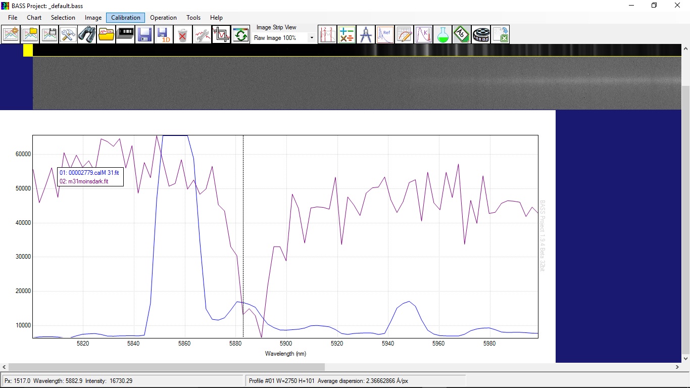 Je ne suis pas certain qu'on puisse voir le doublet du sodium avec un alpy (pouvoir de résolution de 10 angströms). Sur le spectre la distance entre les 2 raies est de 7 angströms