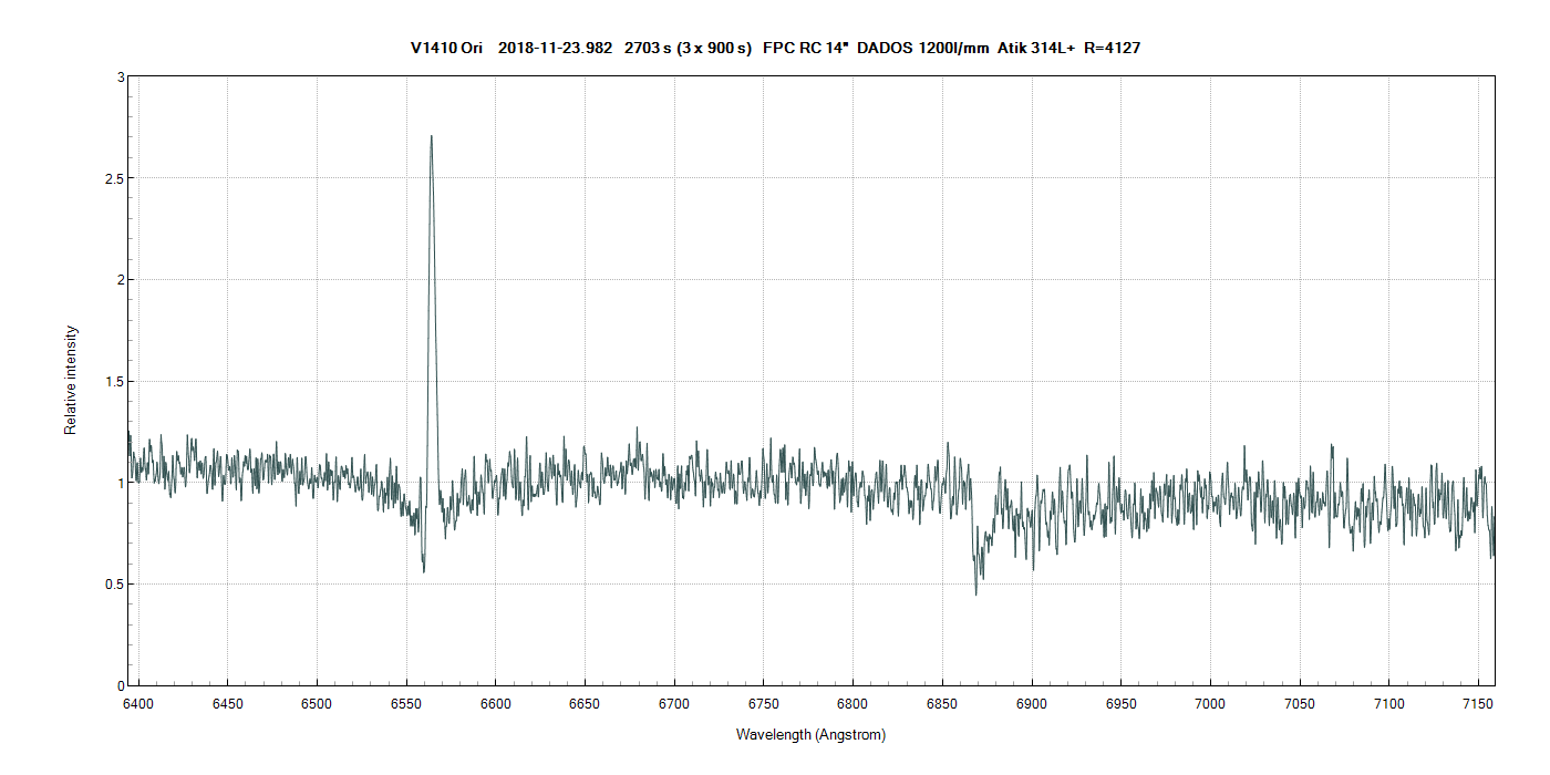Here are spectra of V1307 Ori and V1410 Ori taken on 21st November and sent to Dr Guenther today.