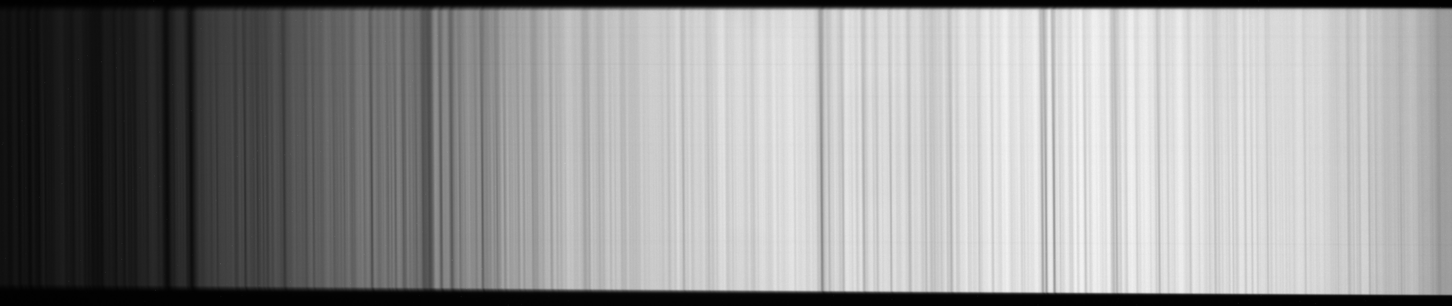 Notes : Réglages ici avec un réseau à 600 tr/mm; j'ai renoncé à m'attarder sur des réglages avec le ciel comme source; réglages faits sur table avec lamp fluo économique face à la fente; la source est placé à 50 cm de la fente et a une étendue limitée à quelques 10x10 cm², un tube de 8 cm (rallonge de porte oculaire) est placée devant la fente pour collimater un peu la lumière ; pas de réglage avec lunette pour l'instant mais cela viendra. Ce point me laisse d'ailleurs dans l'embarras : je ne comprends pas que le résultat soit de cette qualité à quasi pleine ouverture.