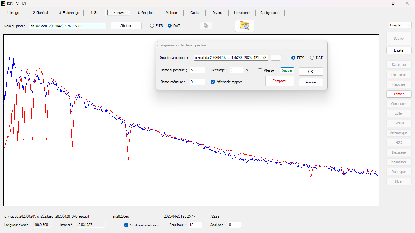 I am quite confident about the calibration (RMS ~ 0.1) even if in the blue, I sometimes observe a slight difference (1 or 2 angström).